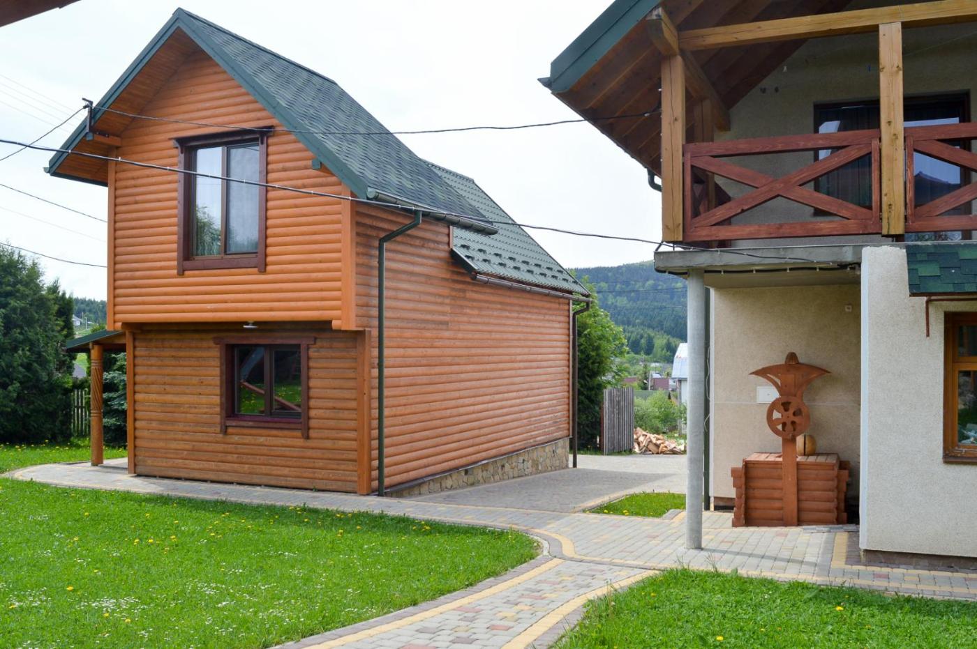 For guests with children, the villa provides outdoor play equipment. A bicycle rental service is available at Zolota Rybka, while skiing and cycling can be enjoyed nearby.